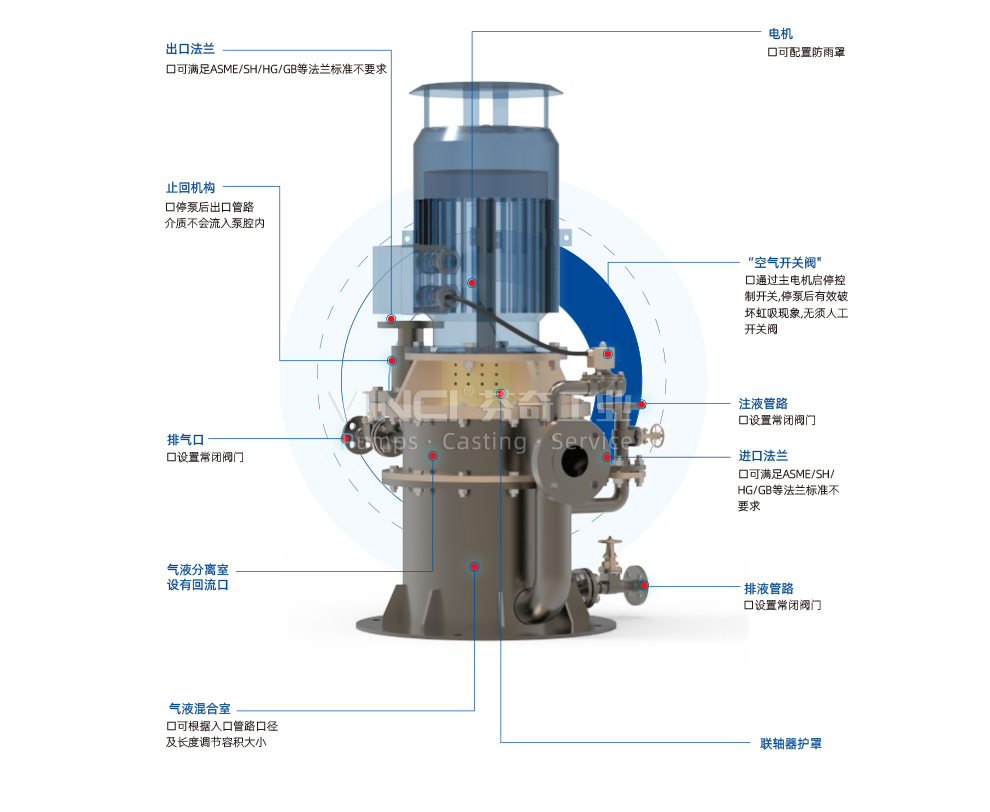 VZX - S 是一種水環(huán)自控式強自吸泵,由獨立的水環(huán)真空泵+離心泵+控制箱以及自吸裝置組成,首次啟動前灌泵后續(xù)啟動不再罐泵。啟動時只需要按下控制箱啟動按鈕,水環(huán)真空泵開始工作抽空吸入管路,整個離心泵充滿介質后,自吸裝置自動連鎖,水環(huán)真空泵電機斷電,水環(huán)真空泵停止工作,同時給主電機供電,離心泵開始工作。停泵后吸入管路及離心泵中的水位自動回落。該泵組可以實現(xiàn)自動啟泵、停泵等一系列操作。